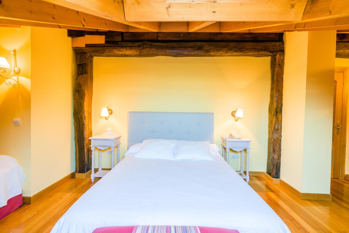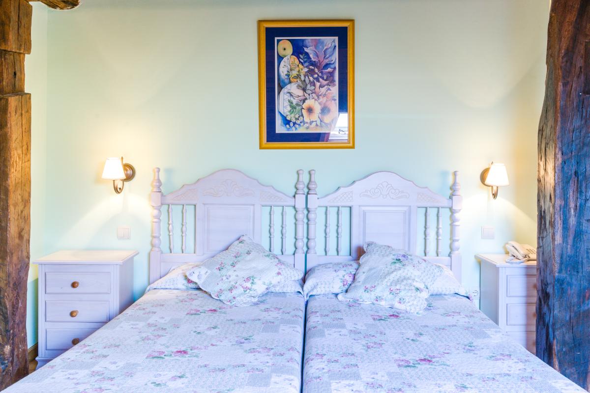 Habitación para dos personas con opción de cama doble o dos camas individuales. Un espacio pensado para tu descanso y tranquilidad, donde podrás relajarte y disfrutar de la tranquilidad que ofrecen las vistas a la montaña, haciendo que tu estancia sea cómoda y agradable.