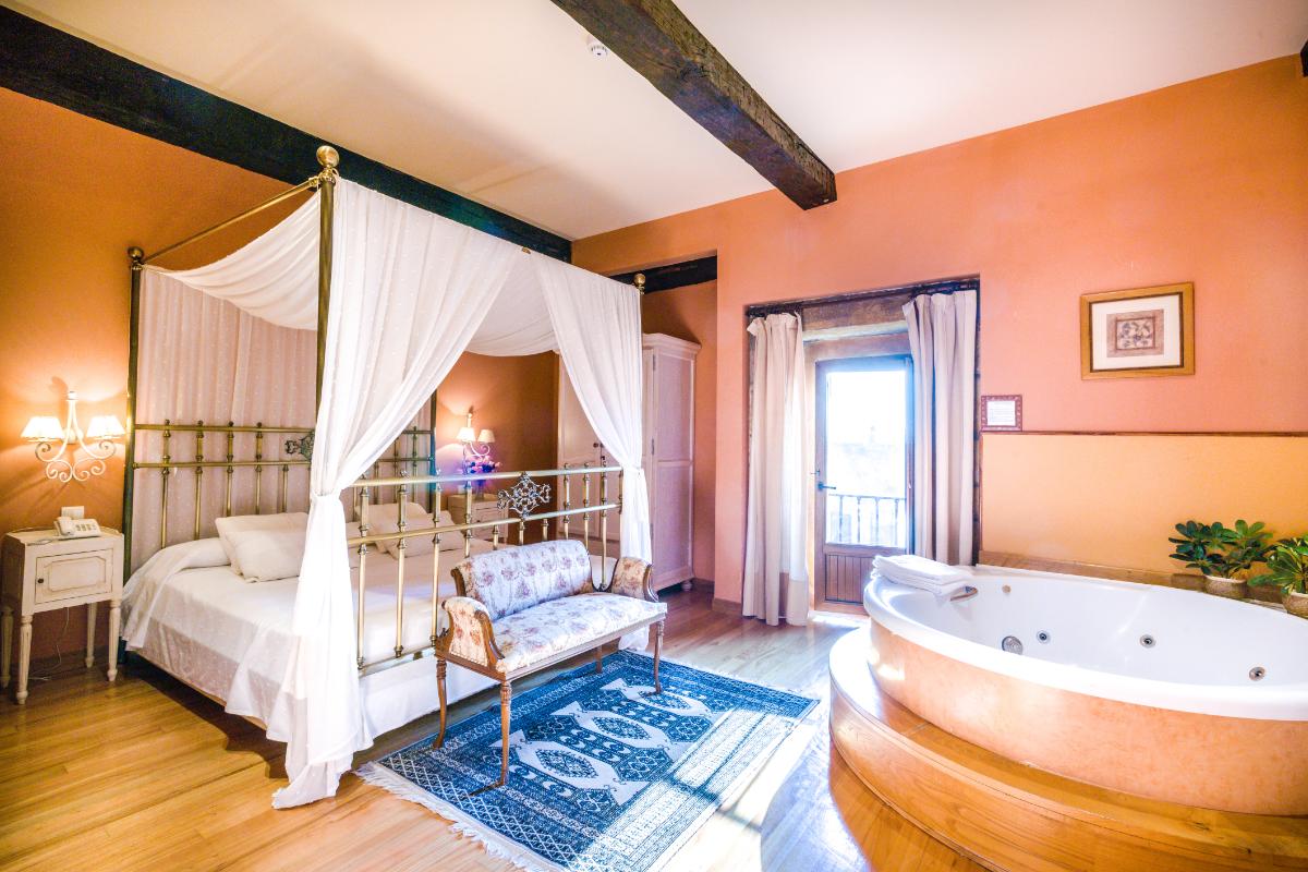 Habitación amplia y confortable para dos personas, equipada con bañera de hidromasaje para disfrutar de momentos de relax. Un espacio pensado para combinar comodidad y bienestar, donde desconectar y sentirte completamente a gusto.
